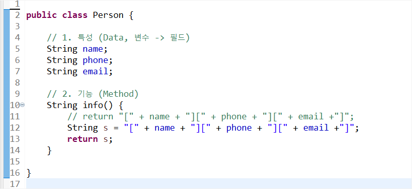 Person person2 = new Person(); // 참조변수만들기 + 인트턴스 만들기 결합