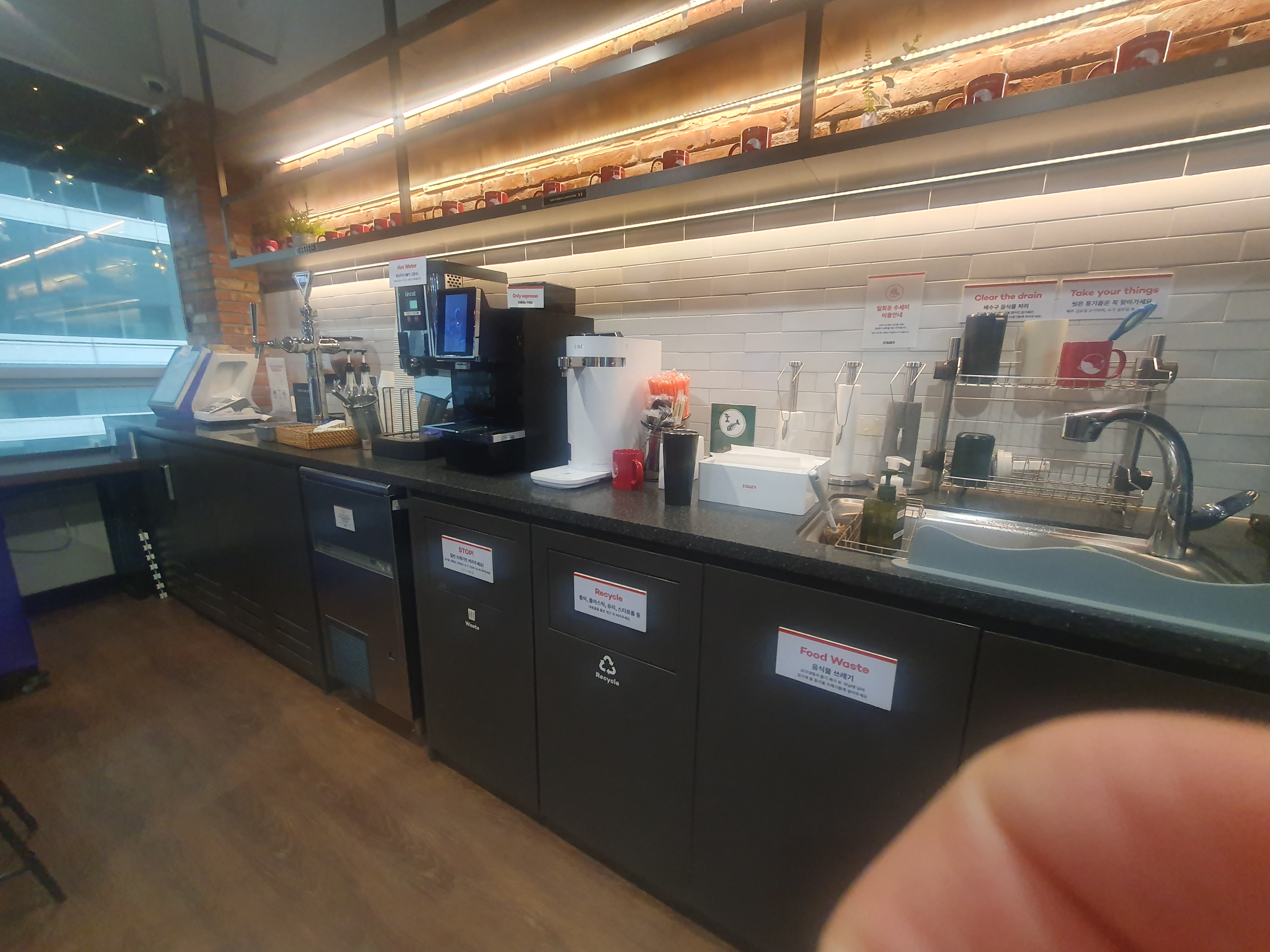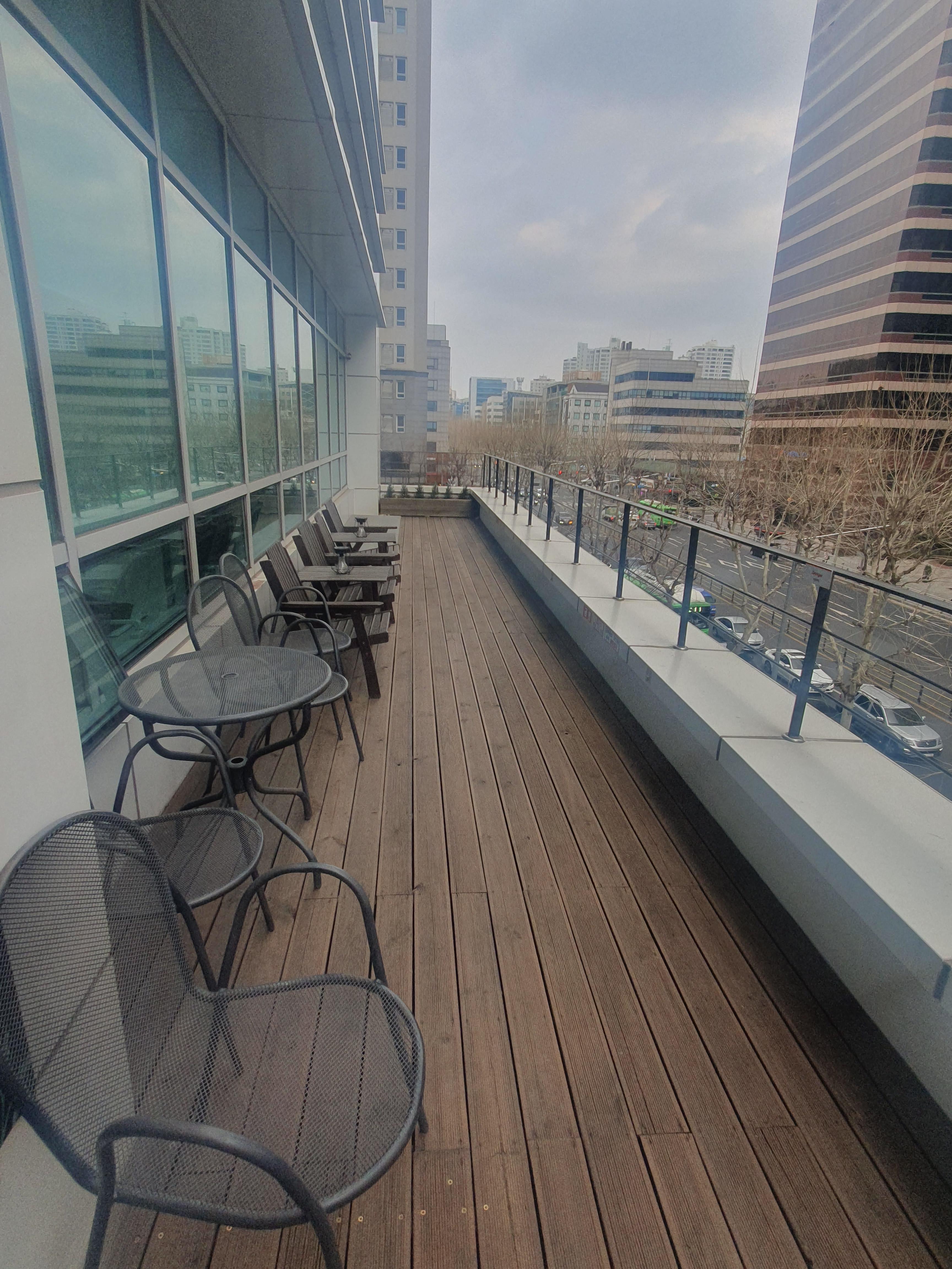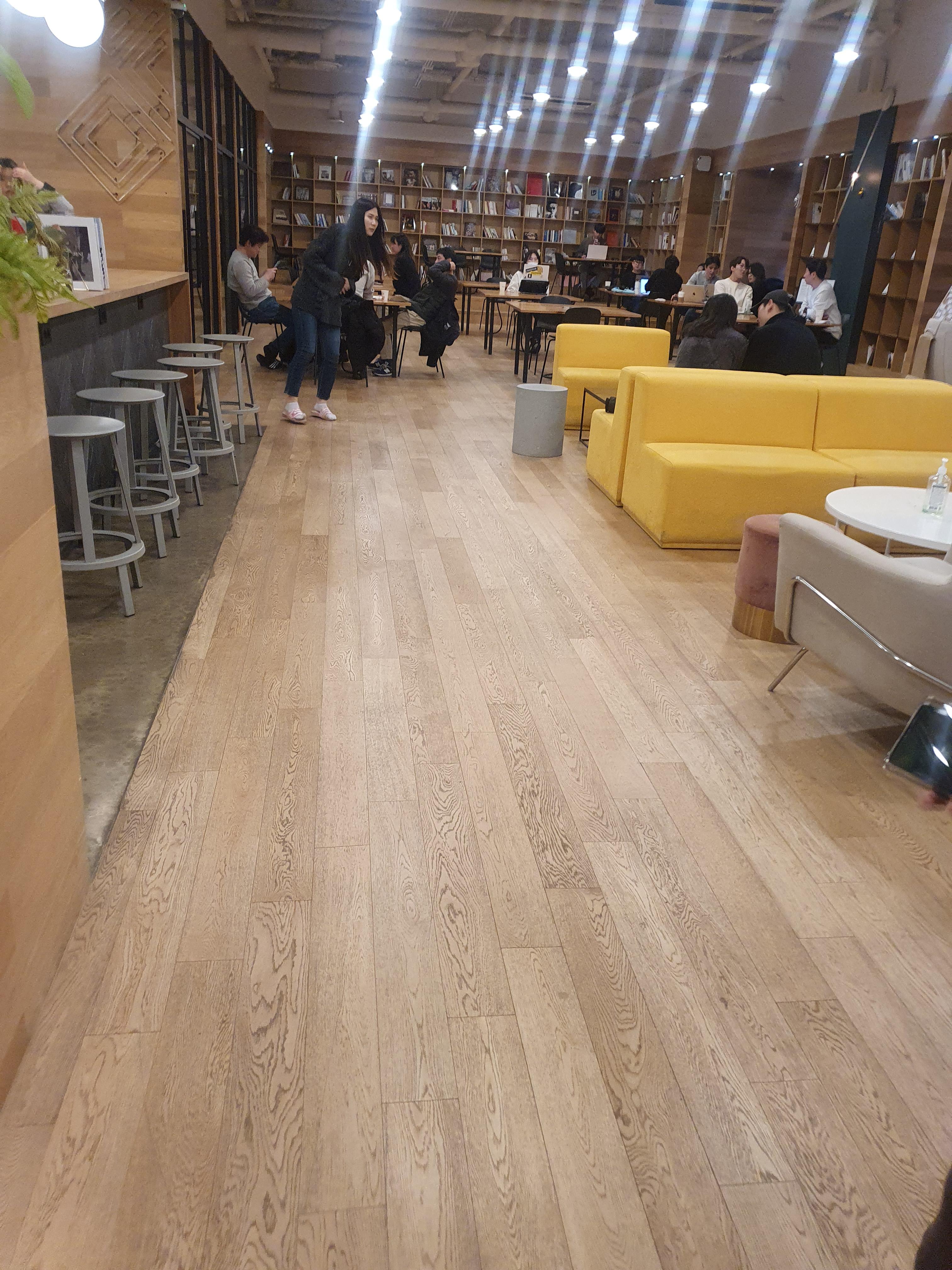 내가 생각하는 장점은 넓게 뻗은 라운지와 무료 커피, 그리고 좋은 접근성과 인테리어다.