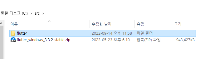 C:\src\flutter\bin 이라고 실행파일이 들어있는 폴더를