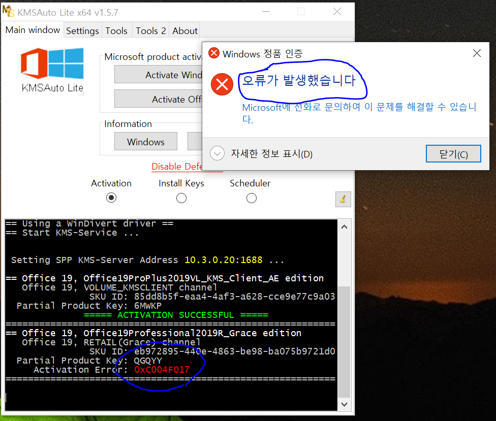 네번째 마지막 시도: KMS TOOLS 이용하여 정품인증 방법!!
